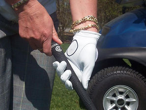 I've drawn a circle on my glove to show you the part of the left hand that is crucial for a good grip. That "fat part," as I call it, has to be resting on top of the shaft and not underneath the shaft. This will end as a weak grip and will keep the club face opened at impact.